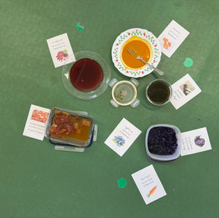 Lors de nos temps d’échanges entre les classes de maternelle, nous avons mené différentes expériences autour des couleurs en utilisant de l’encre ou bien des éléments naturels tels que des aliments afin de regarder les pigments.
