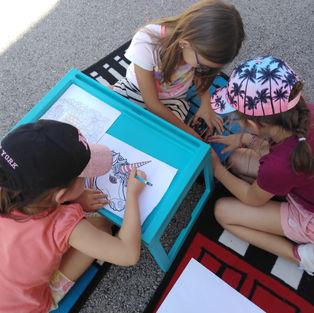 En passant par les cordes à sauter, les élastiques, les échasses, les cerceaux les enfants ont découvert ou redécouvert leurs espaces de jeux. Certains construisent des villes en kappla, jouent au mikado géant, d’autres lisent ou dessinent.