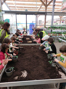A Gamm vert, nous avons été accueillis pour apprendre à semer des graines : basilic et Ipomée.